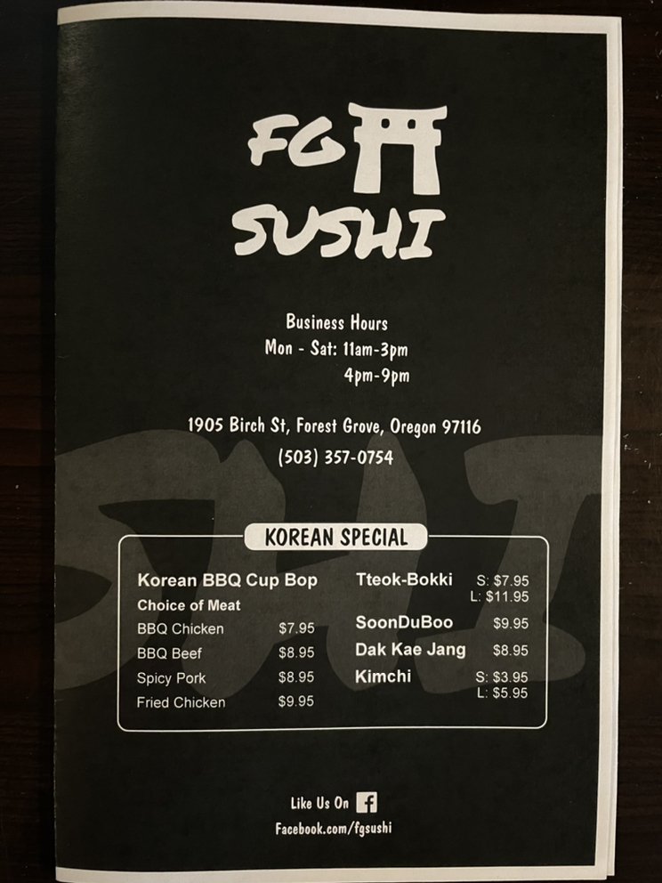 F G Sushi is a Japanese noodle and sushi bar located in Forest Grove, Oregon. This casual yet vibrant restaurant offers a range of delicious dishes that cater to different tastes. The reviews from satisfied customers highlight the exceptional service and mouth-watering food, such as the best spicy Ramen, fresh hand rolls, and amazing sushi. The owner's hospitality truly sets this place apart, making diners feel welcome and appreciated. With options for delivery, takeout, and catering, F G Sushi is a great choice for both casual lunches and group gatherings. Don't miss out on their tasty beer and wine selections and be sure to try their house-made salad dressing. For an unforgettable dining experience with fantastic flavors and top-notch service, F G Sushi is a must-visit destination.